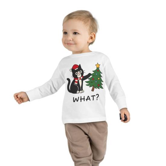 This adorable toddler tee features a playful cat in a festive Santa hat, mischievously nudging a decorated Christmas tree. With its whimsical and cozy design, it adds cheerful charm to your little one’s holiday wardrobe. Perfect for family gatherings, school events, or holiday photos, this tee captures the fun of the season while keeping your toddler comfortable all day. A sweet choice for Christmas celebrations and a thoughtful gift for the holidays.