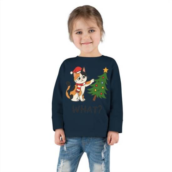 This adorable toddler tee features a playful cat in a festive Santa hat, mischievously nudging a decorated Christmas tree. With its whimsical and cozy design, it adds cheerful charm to your little one’s holiday wardrobe. Perfect for family gatherings, school events, or holiday photos, this tee captures the fun of the season while keeping your toddler comfortable all day. A sweet choice for Christmas celebrations and a thoughtful gift for the holidays.