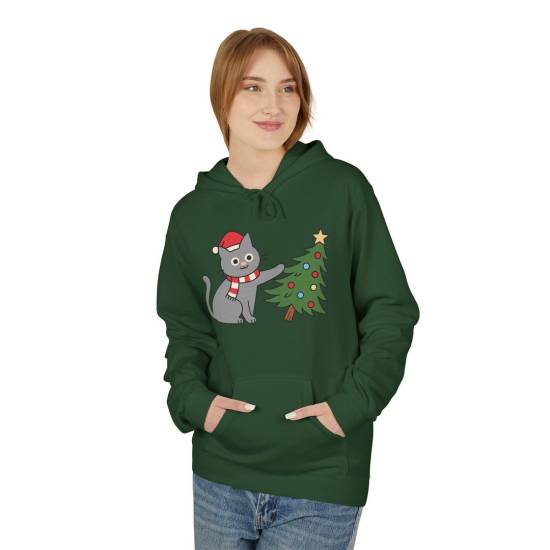 Cozy up in this adorable unisex midweight fleece hoodie, perfect for chilly nights and festive gatherings. Featuring a playful cat pushing over a decorated Christmas tree, this hoodie brings warmth and holiday cheer to every occasion. Its relaxed fit with dropped shoulders makes it ideal for layering, while the soft fleece keeps you comfortable all season long. Whether youโre sipping hot cocoa, celebrating with family, or attending a Christmas party, this hoodie is a must-have for cat lovers and anyone spreading festive joy.
