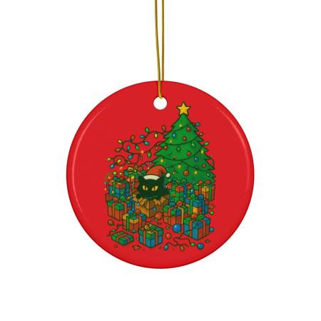 Whimsical Cat Christmas Ceramic Ornament – Cat in Santa Hat, Holiday Decor, Tree Decoration, Gift Tag, Festive Home Accent by ShoobeeCreations